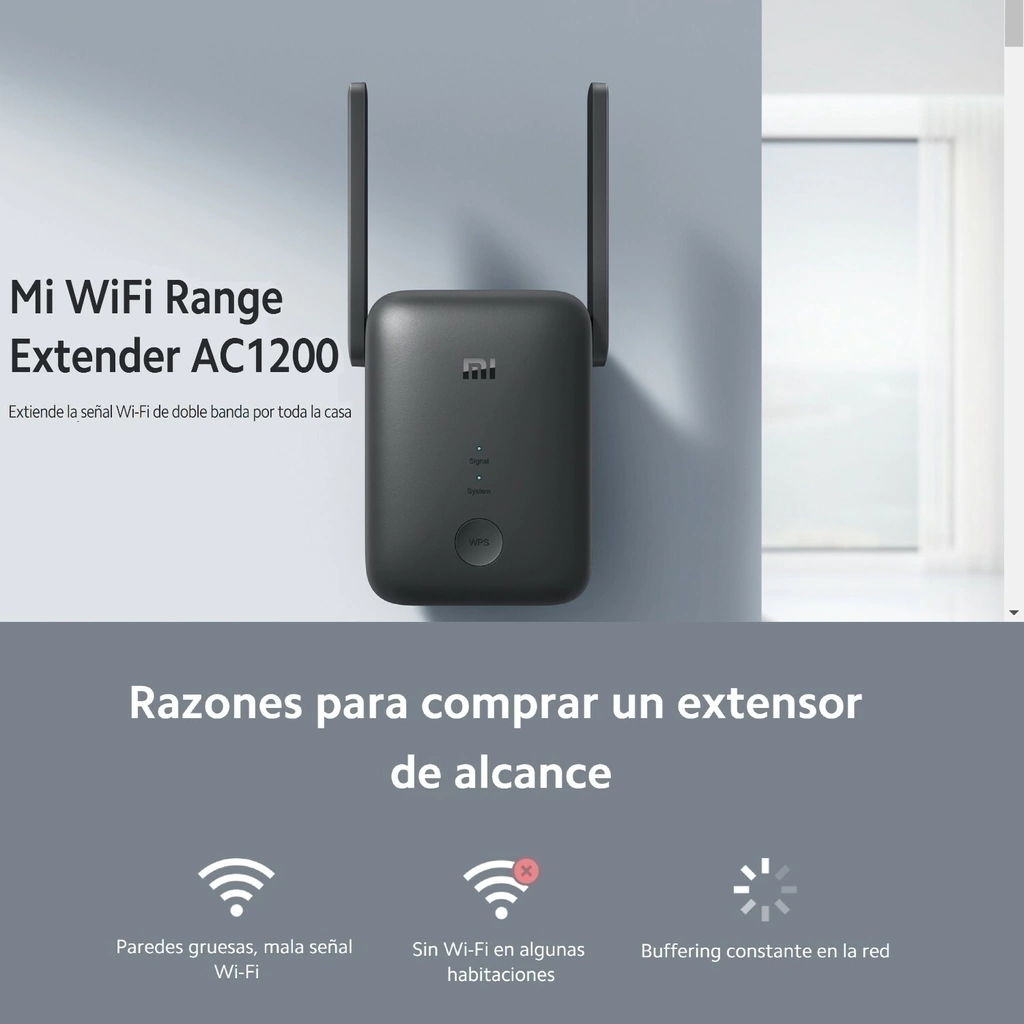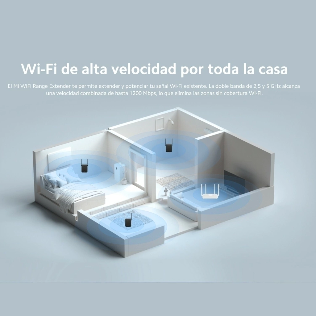 Mi extensor de rango WiFi te permite aumentar y mejorar la señal WiFi existente. Las bandas dobles de 2,5 GHz y 5 GHz alcanzan una velocidad combinada de hasta 1200 Mbps, eliminando eficazmente las zonas muertas del WiFi.