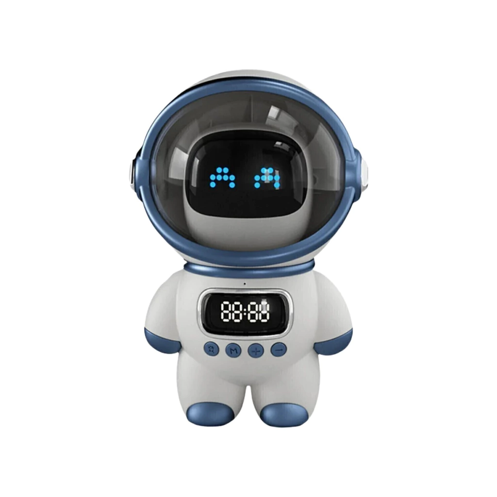 Despierta con estilo y sonido poderoso. Este parlante Bluetooth en forma de astronauta es tu compañero perfecto, radio FM reloj despertador y batería de larga duración. ¡Conéctalo y lleva la diversión a cualquier lugar!