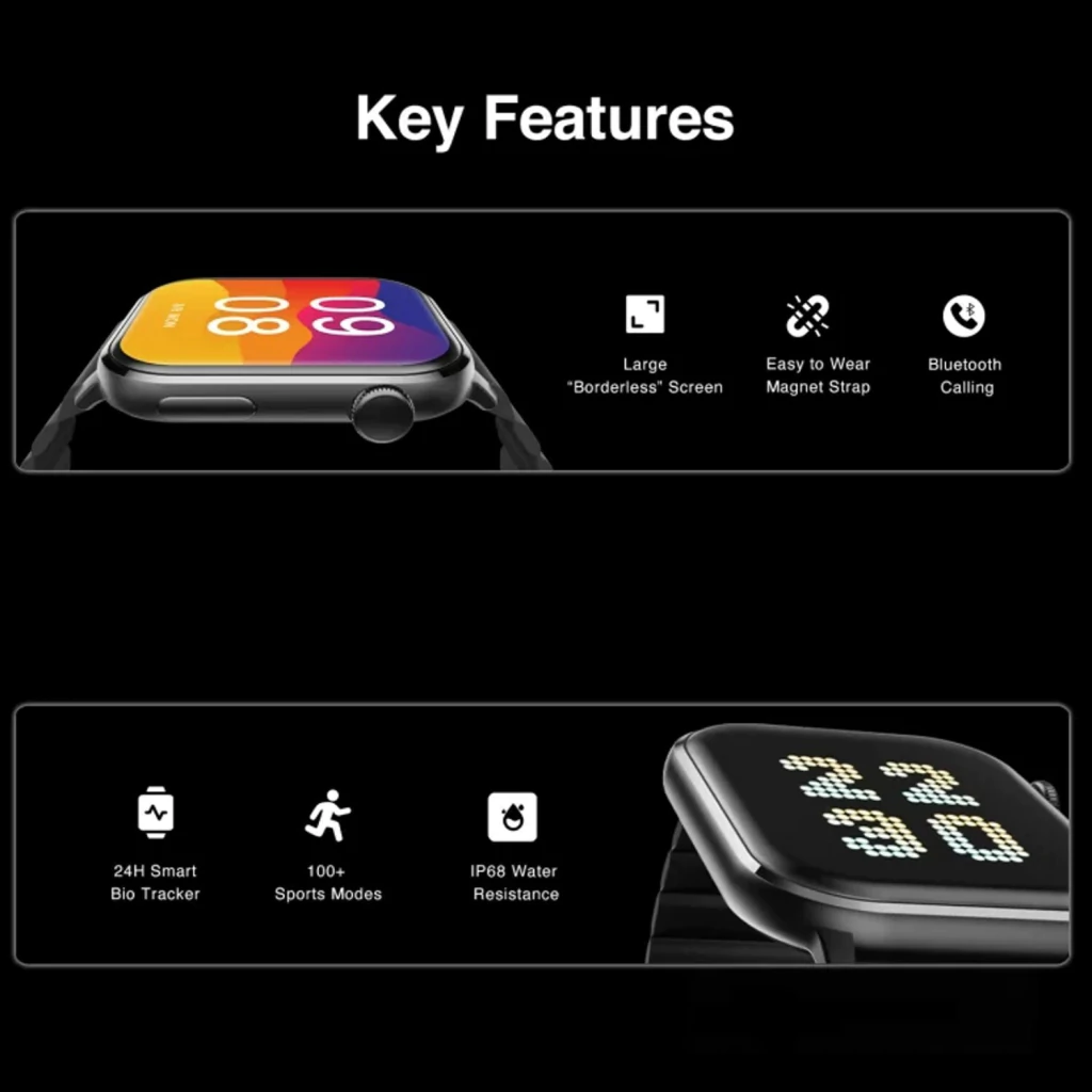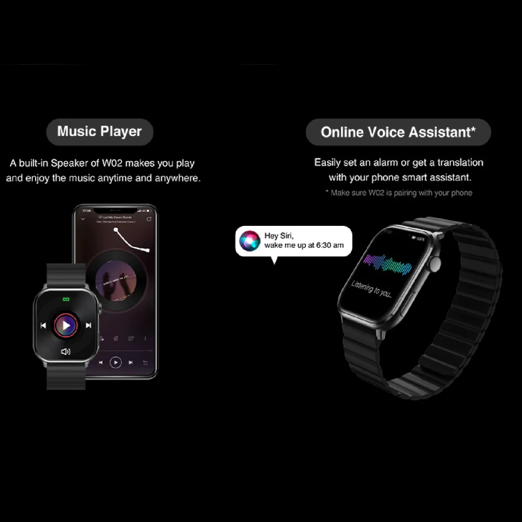 Como una versión actualizada de la familia de relojes inteligentes IMILAB, el reloj inteligente IMILAB W02 presenta una pantalla táctil completa súper grande y sin bordes de 1,85 pulgadas con una relación pantalla-cuerpo del 81%. Además de la innovadora correa magnética , el reloj inteligente W02 lleva los dispositivos portátiles a un nuevo nivel. La correa portátil magnética le permite usar una correa de reloj en segundos. Respetuoso con la piel, transpirable, impermeable y más cómodo que nunca. Además, adopta tecnología avanzada y admite llamadas inteligentes Bluetooth para una charla rapida con amigos y familiares. Al mismo tiempo, también está equipado con varias características que incluyen un monitor de frecuencia cardíaca, un monitor de oxígeno en sangre SPO2, un monitor de sueño, un reproductor de música, un asistente de voz, más de 100 modos deportivos, resistencia al agua IP68 , etc. Sin orden y con audacia, el W02 nació para una vida más inteligente.